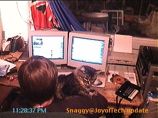A messy desktop and a cat on your shoulder... what more could a geek ask for?